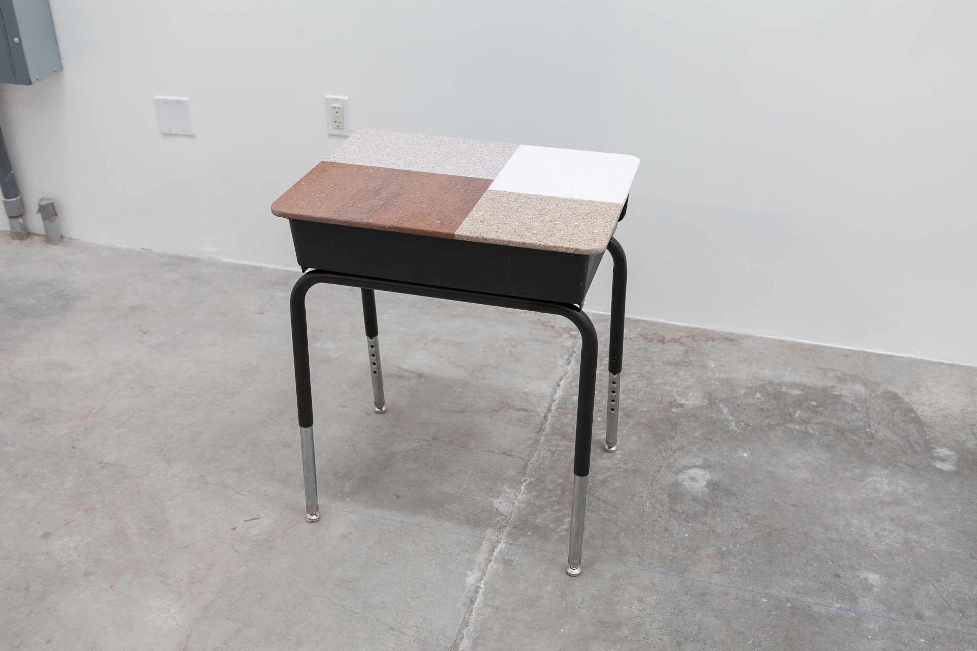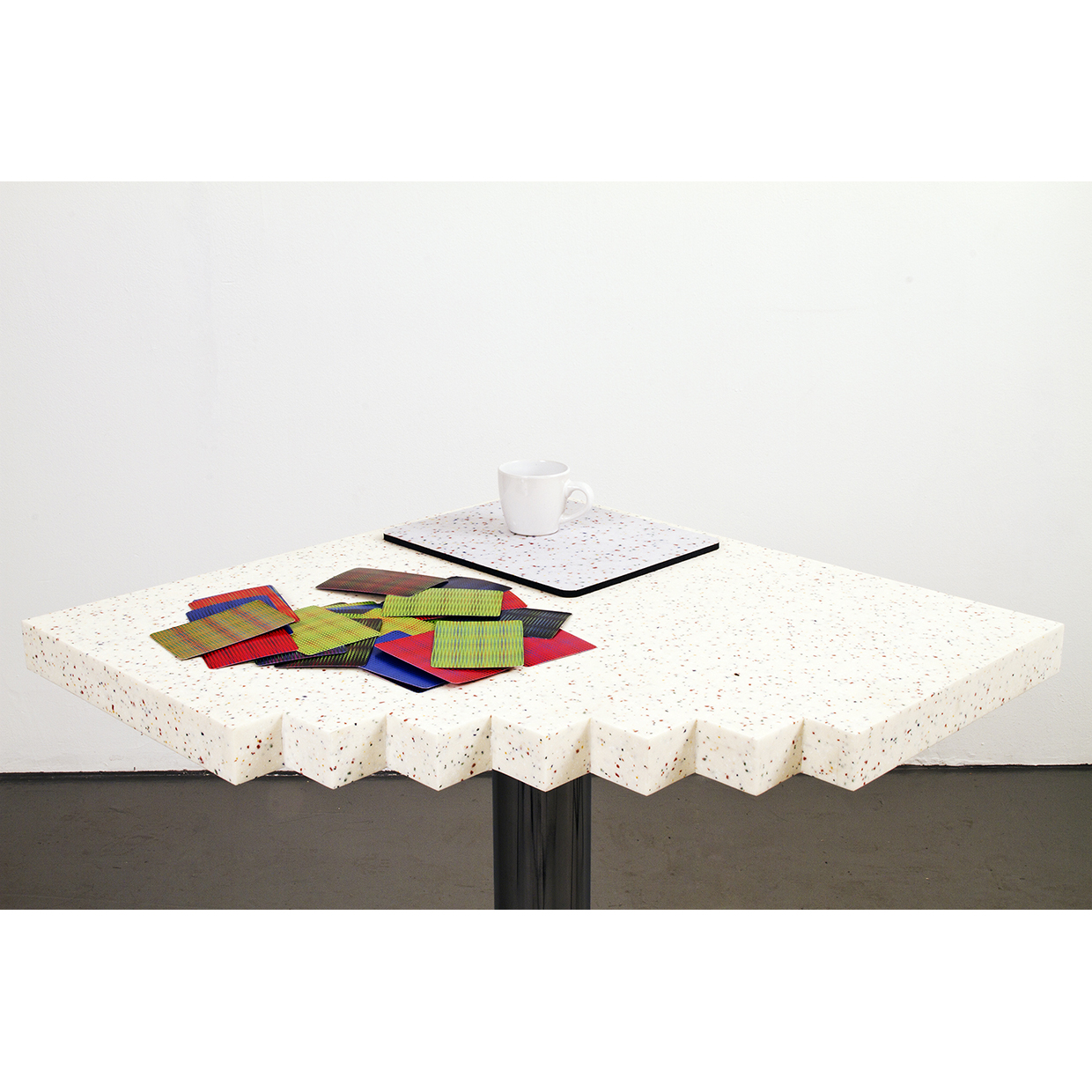 editioned playing cards, mousepad, found cup, metal, Solid Surface
